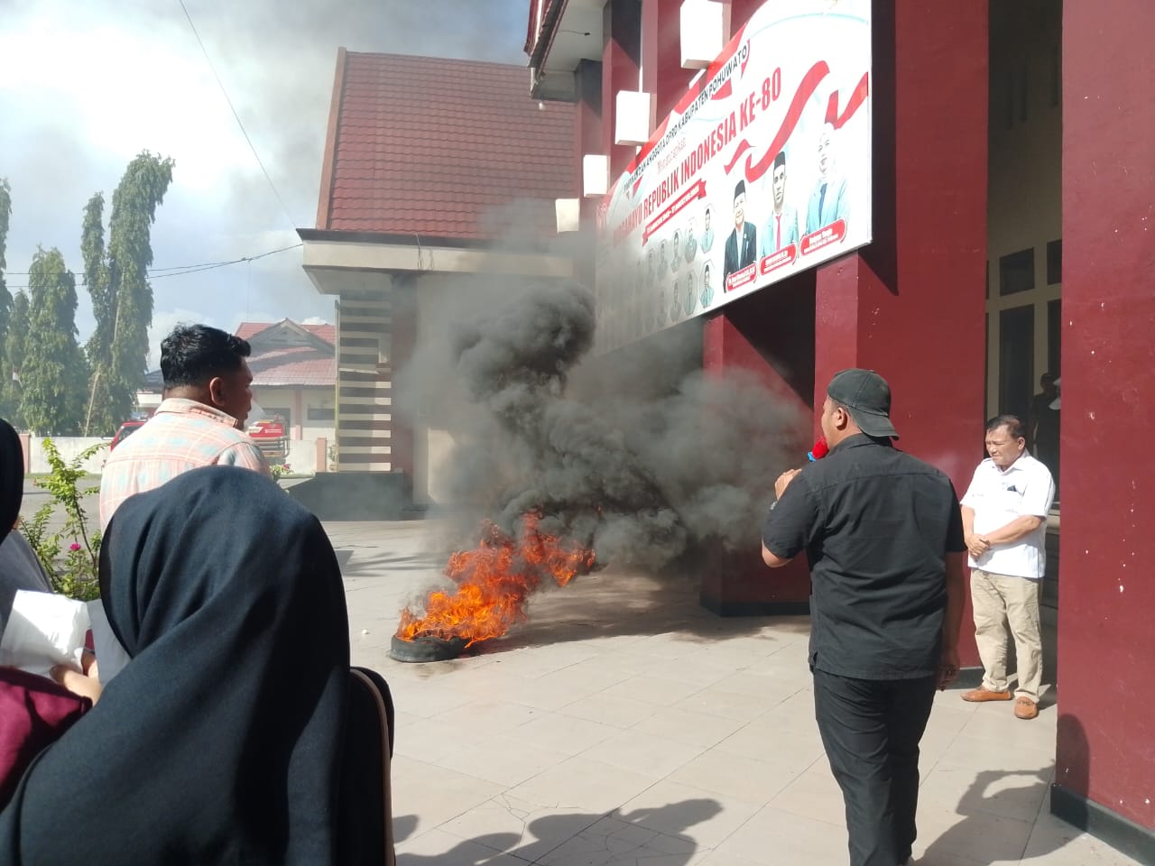 Unras tersebut di warnai pembakaran ban, bahkan dalam orasinya Rahmat menyebut jika DPRD tidak mampu melahirkan solusi atas nasib penambang yang berada di 100 Ha,maka di sarankan memakai rok.