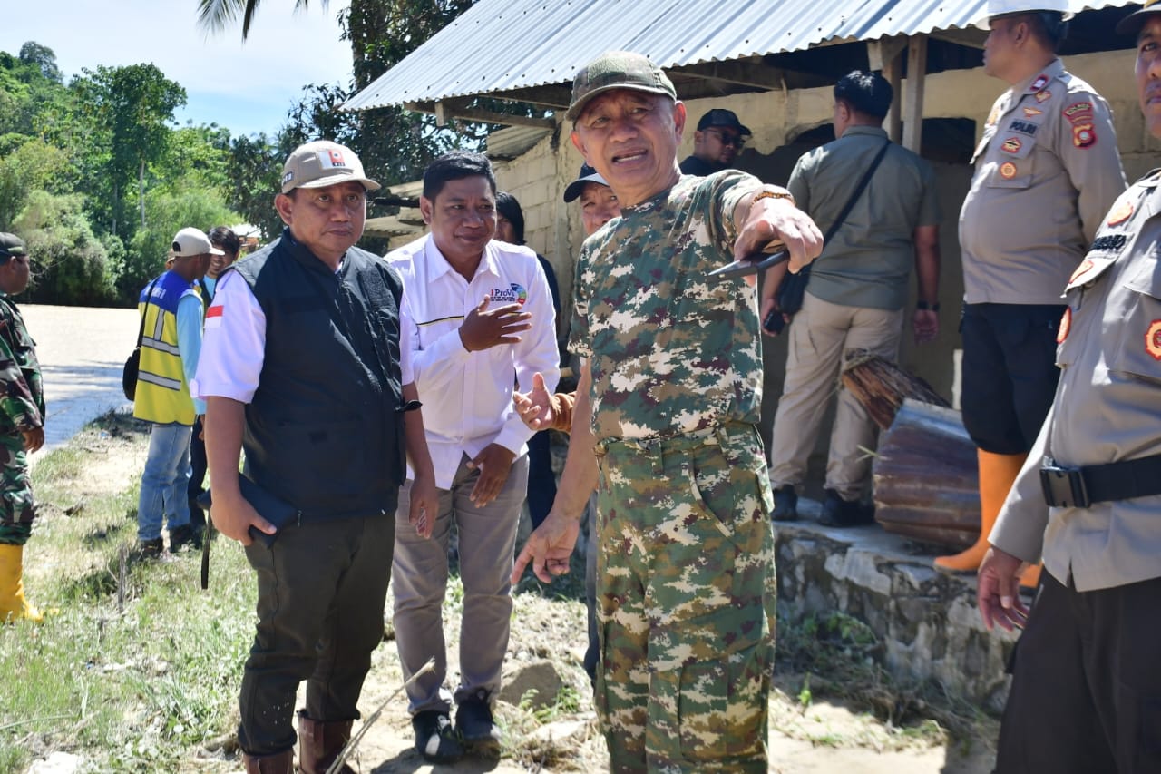 Bupati Pohuwato Saipul A. Mbuinga bersama Anggota DPRD langsung mendatangi lokasi sesaat setelah banjir melanda desa di ujung Utara kecamatan Buntulia.